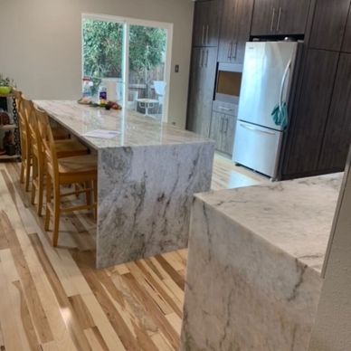 Want to add instant luxury and modern elegance to your kitchen or bath? Waterfall countertops bring sleek, seamless design that flows down the sides, creating a striking visual centerpiece. Whether it’s marble, quartz, or granite, this style turns your space into a showstopper while protecting cabinetry and adding resale value.